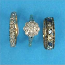 An 18ct gold illusion-set diamond cluster ring, a 9ct gold diamond set half eternity ring and a 9ct gold full eternity ring £150-250