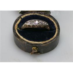 An 18ct gold ring with scroll carved setting with five graduated old cut diamonds £80-120