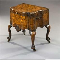 An 18th Century Dutch Walnut and Marquetry Night Commode], with a rising lid (interior lacking) over a shaped serpentine body raised on cabriole legs with ball and claw feet, {56cm by 54cm by 43cm} £300-500