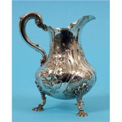 An 18th Century Style Silver Jug, decorated in relief with flowers and a vacant cartouche, on shell