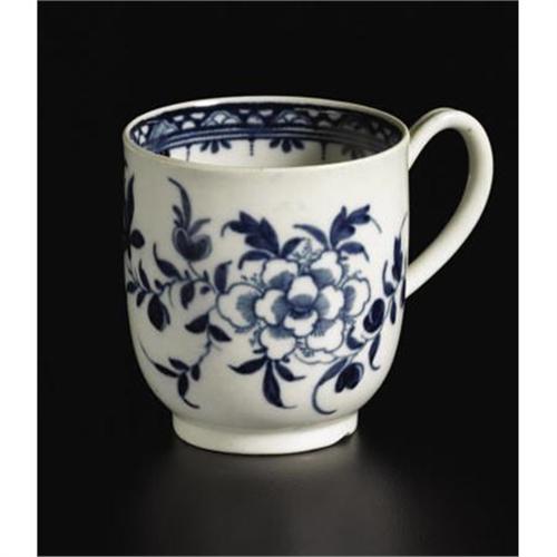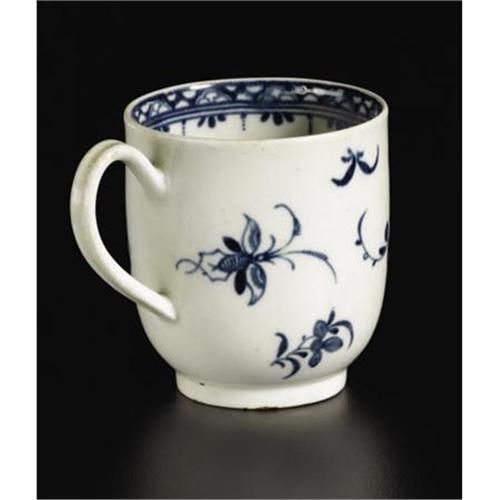 <B>An Eighteenth-century English Porcelain Coffee Cup</B></I><BR><BR>attributed to Worcester Porcelain Company<BR>Worcester, England<BR>circa 1760-1780<BR>soft paste porcelain with transfer printed decoration<BR>Marks: crescent<BR>2.5 inches high x 3.19 inches wide x 2.25 inches deep<BR><BR>The body with transfer printed floral spray decoration and inner lip with a chinoiserie style diaper pattern.<BR><BR><b>Shipping:</b> Requires 3rd Party Shipping (<a target="_blank" href="http://www.heritageauctions.com/common/shipping.php">view shipping information</a>)