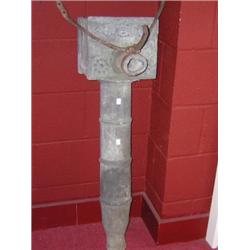 An 18th century lead pump head, the rectangular section hopper cast with foliate swag above the spout flanked with cabochon roundels, the tubular supporting column with three reed bands, 114.5cm high £300-400