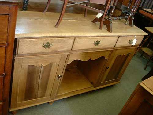 An 18th century style oak low dresser, H 86cms W 153cms £120-180