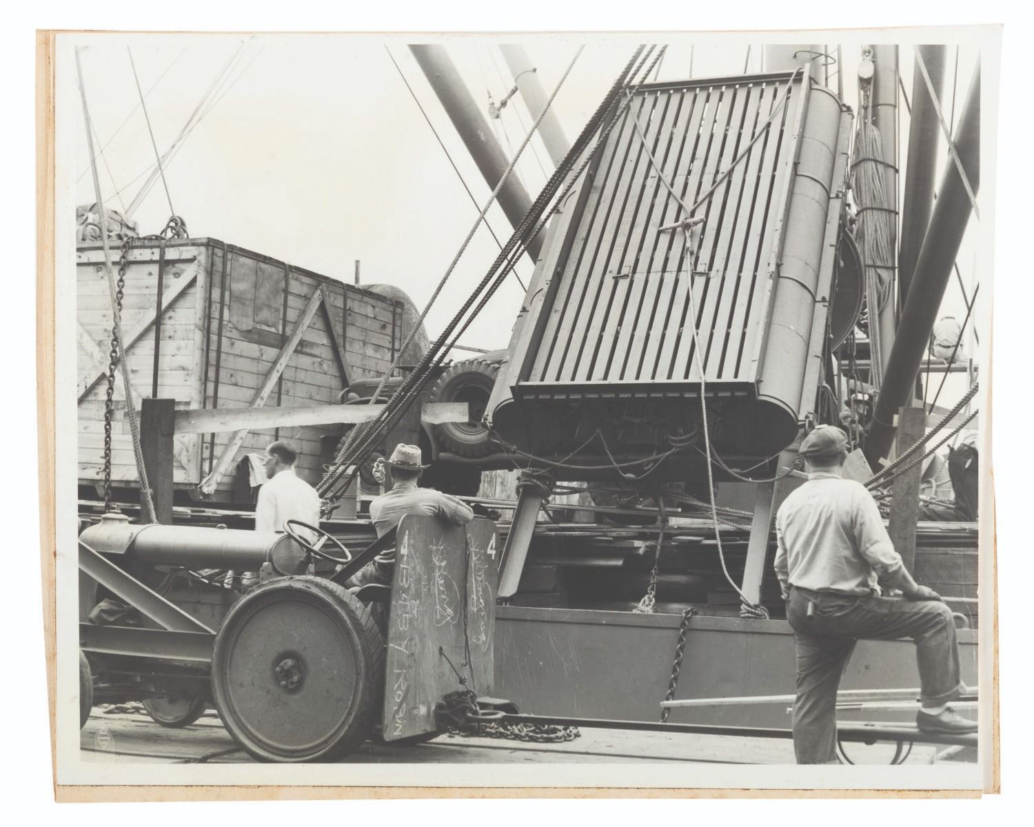 (Warner Bros, 1943) A collection of 13 set photos from the World War II film “Action in the North Atlantic” starring Humphrey Bogart. Images include various views of the SS Northern Star, its life boat, on set crew members, and one of Humphrey Bogart. The pictures are stamped on the back attributing credit to Jack Woods who was Warner Bros in-house still photographer from the 1940s through the 60s. The glossy 8” x 10” photos are in fair to good condition with three in poor condition. The pictures exhibit glue stains on the reverse, discoloration from age, rips, tears, and pinholes from display. Disneyland. Artist Harper Goff’s fingerprints are all over pop culture’s history. Goff first met Walt Disney in London when the two collectors tried to buy the same train set. The Disney Legend would go on to design the Nautilus, create concepts for Main Street, U.S.A., and even play banjo in the popular Firehouse Five Plus Two, a band consisting of Goff and his fellow Disney artists. Goff’s talents were appreciated throughout Hollywood, as he worked for many different studios over the years. We are proud to have some of his wonderful designs up for auction.