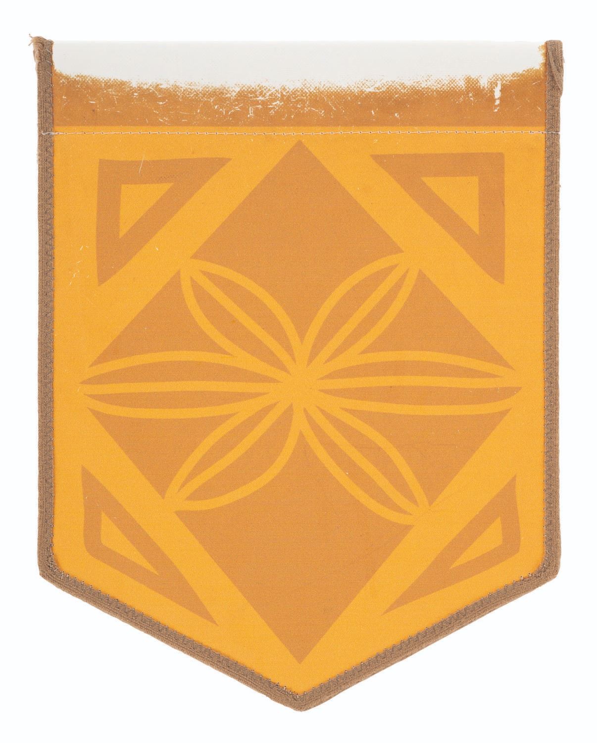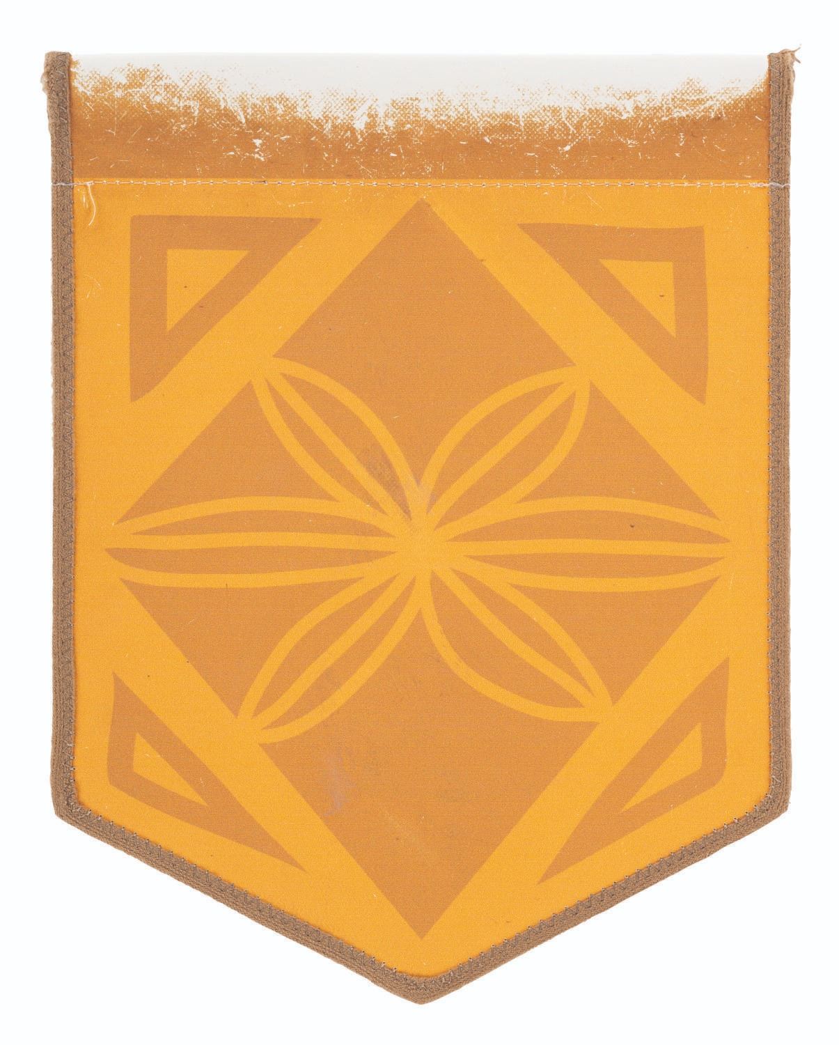 (Disneyland, 2000s) An Adventureland crowd control flag. Measuring 13"x10", this flag is in fair condition with fading along the top, scratches, and wear throughout from Park use.