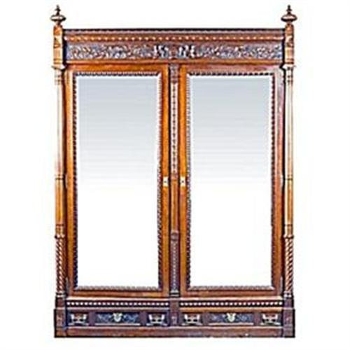 </font></strong>Museum quality armoire in the Aesthetic Style retaining original finish. The armoire is branded in the back "Lejambre". Henry Lejambre was a French cabinet maker & upholsterer who was established in Philadelphia. I have a bill of sale that states his company as: A.& H. Lejambre, Dr. His manufacture was located on 13th & Filbert and his store was on 1206 Walnut street. His company also made curtains, mantel pier frames, walnut mantels and mirrors made to order.