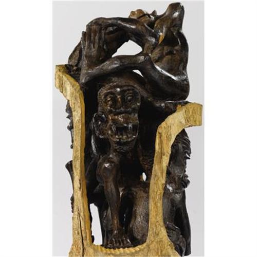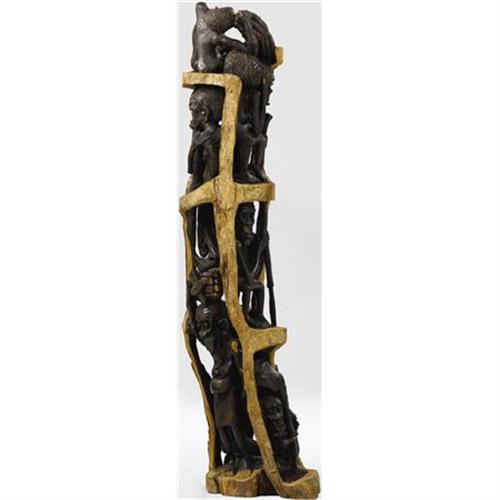 <B>An African Wooden Sculpture<BR></B></I>Alumos<BR>Twentieth Century<BR>Entitled <I>Makonde Ancestors</B></I> depicting ancestors of the Makonde family in daily pursuits, carved from Ebony<BR>Unmarked<BR>48 inches high x 15 inches wide<BR><BR><b>Shipping:</b> Requires 3rd Party Shipping (<a target="_blank" href="http://www.heritageauctions.com/common/shipping.php">view shipping information</a>)