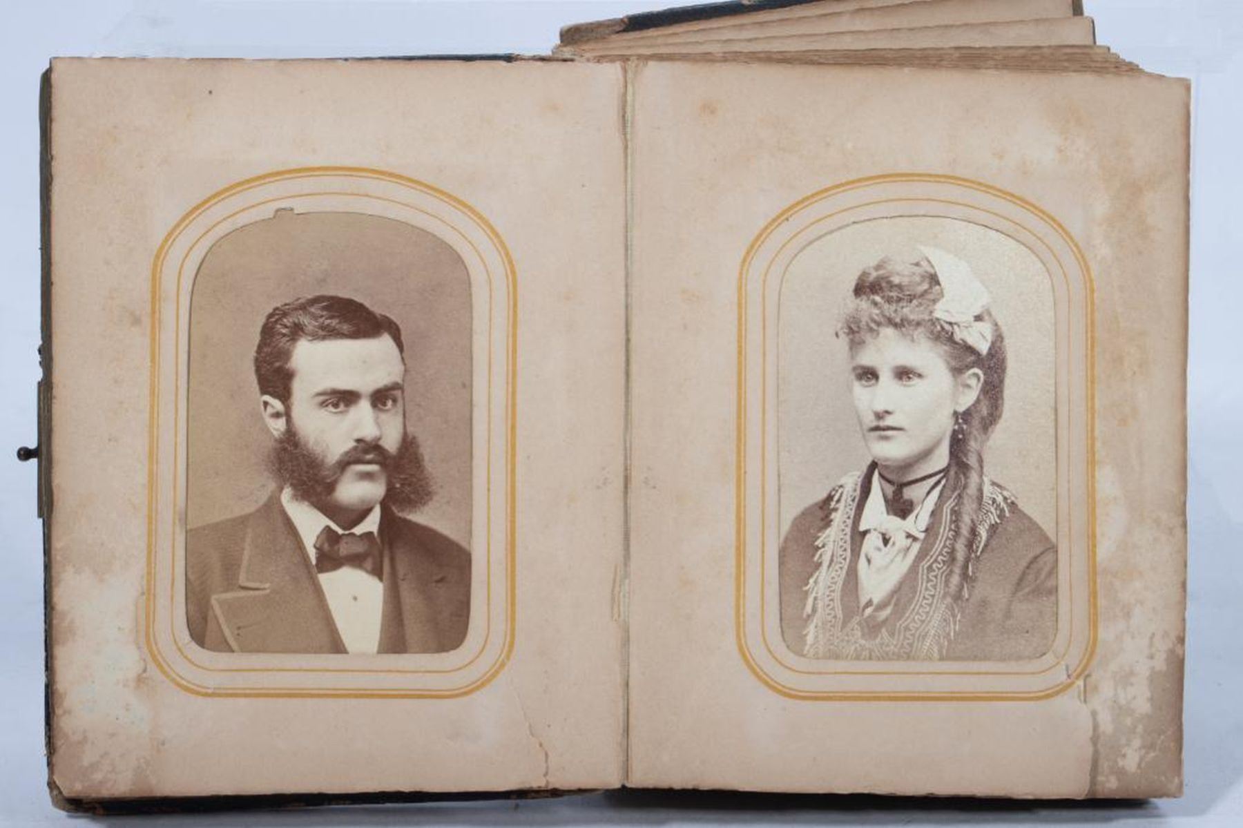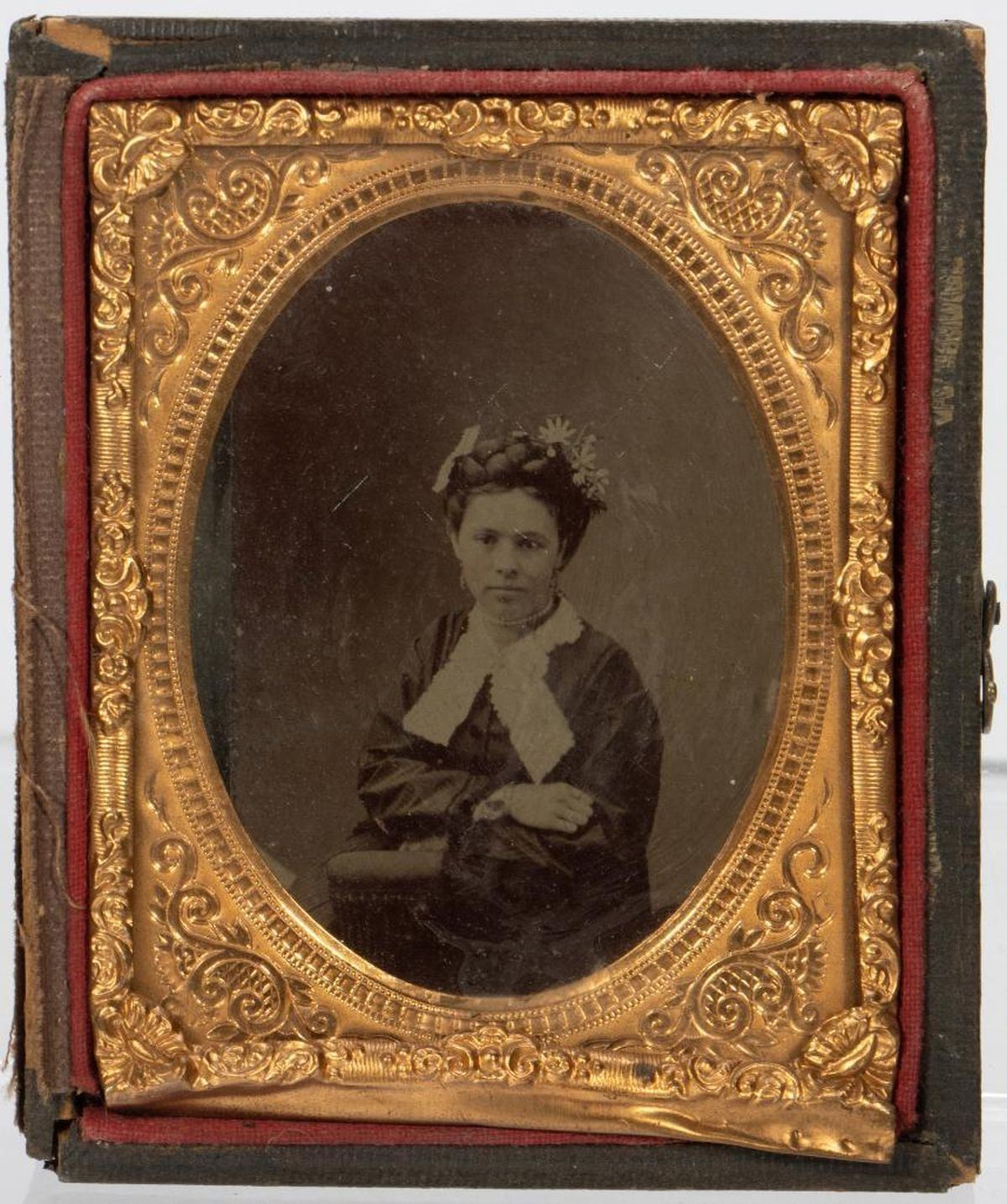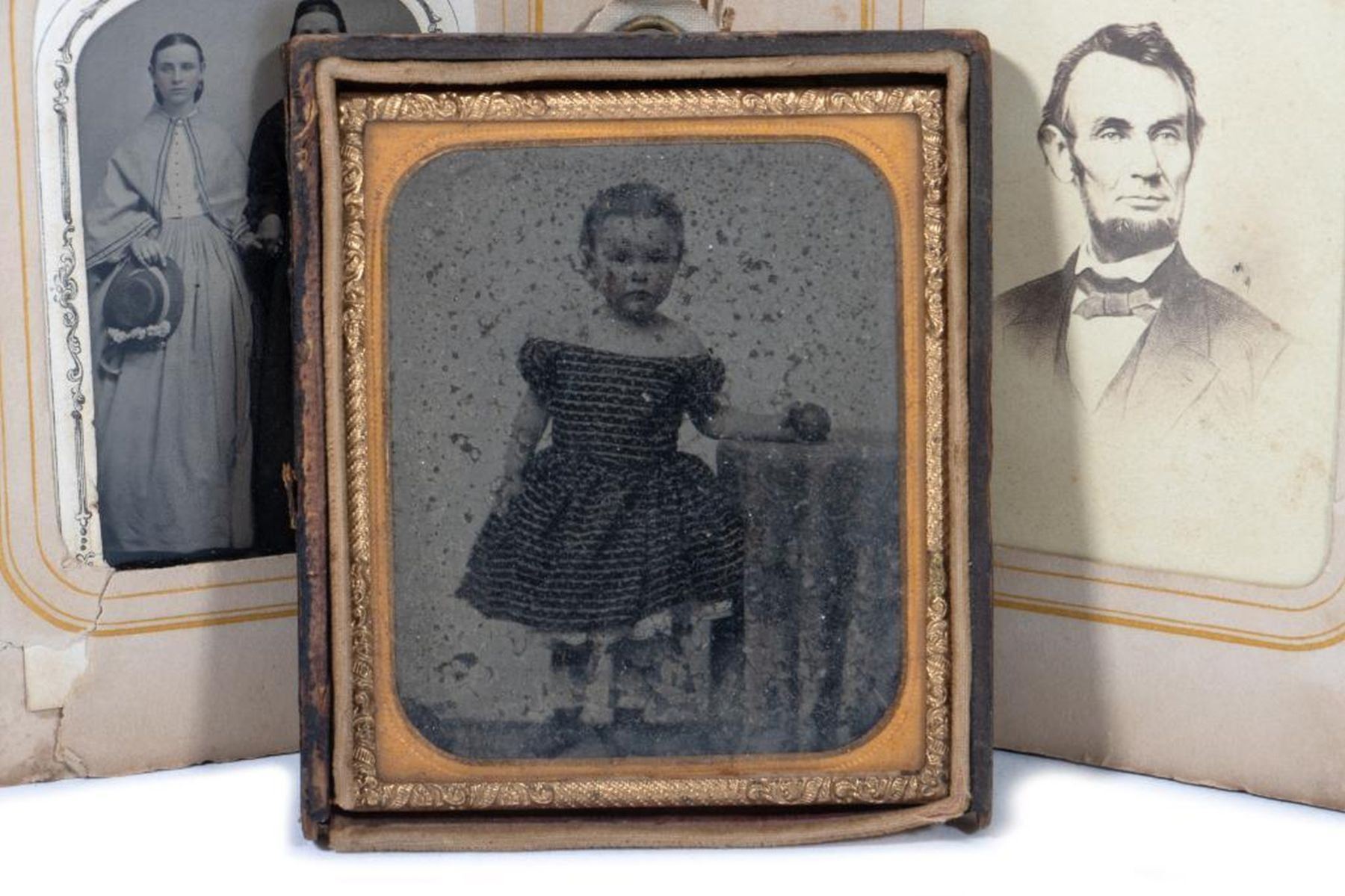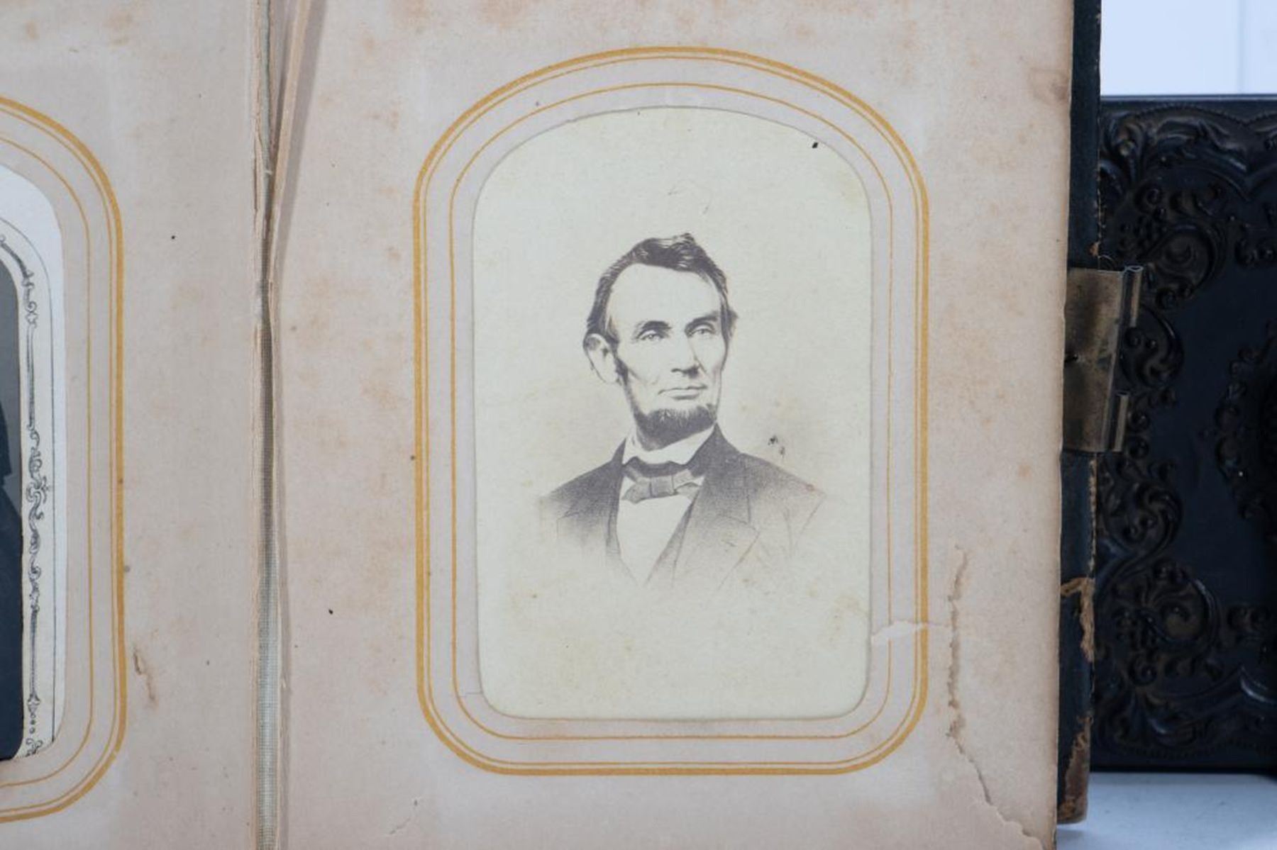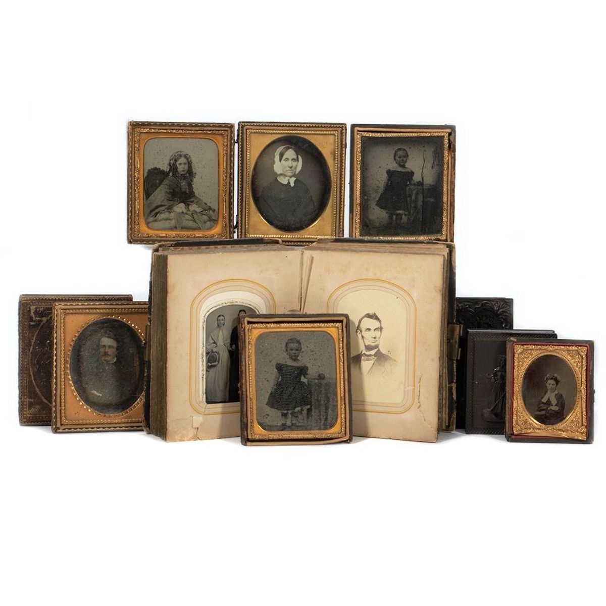 An Album of twenty seven images, most unindentified, several soldiers, and one portrait of Lincoln. 6in. (15cm) h. together with a collection of individual gutta percha framed portraits. Condition: Fading and foxing of some images frames detached.
