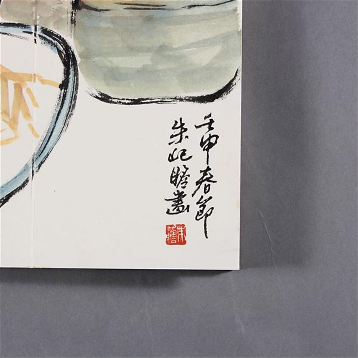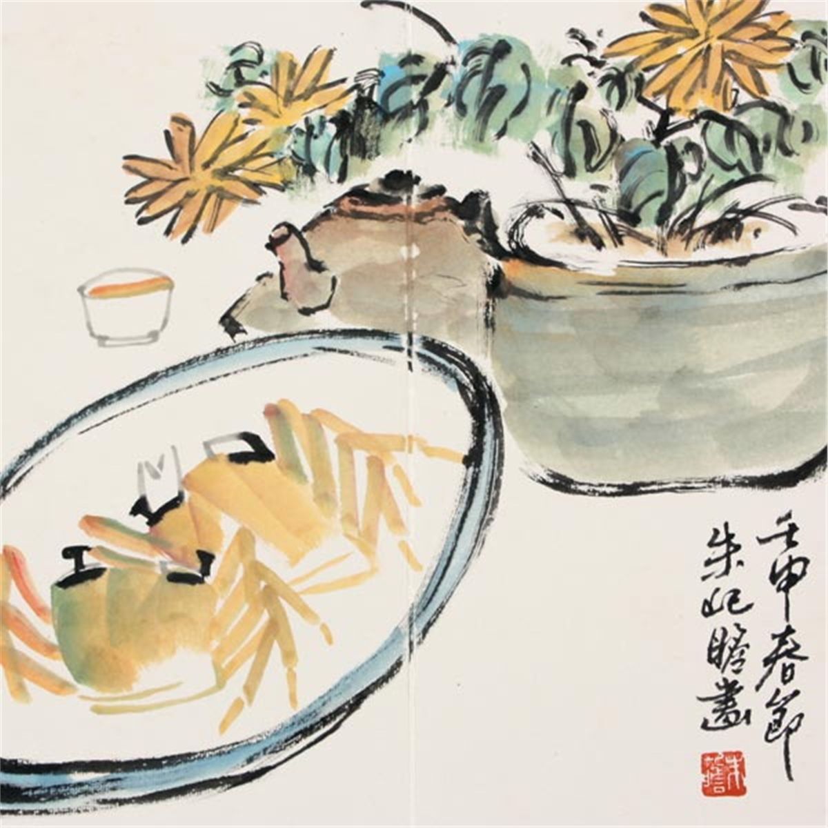 An Album of Ten Paintings Marked Zhu Jizhan, the first page inscribed as 'dedicated to Comrade Hongquan', dated, some bearing a seal, or with an inscription {Each: 31.6 x 32 cm}