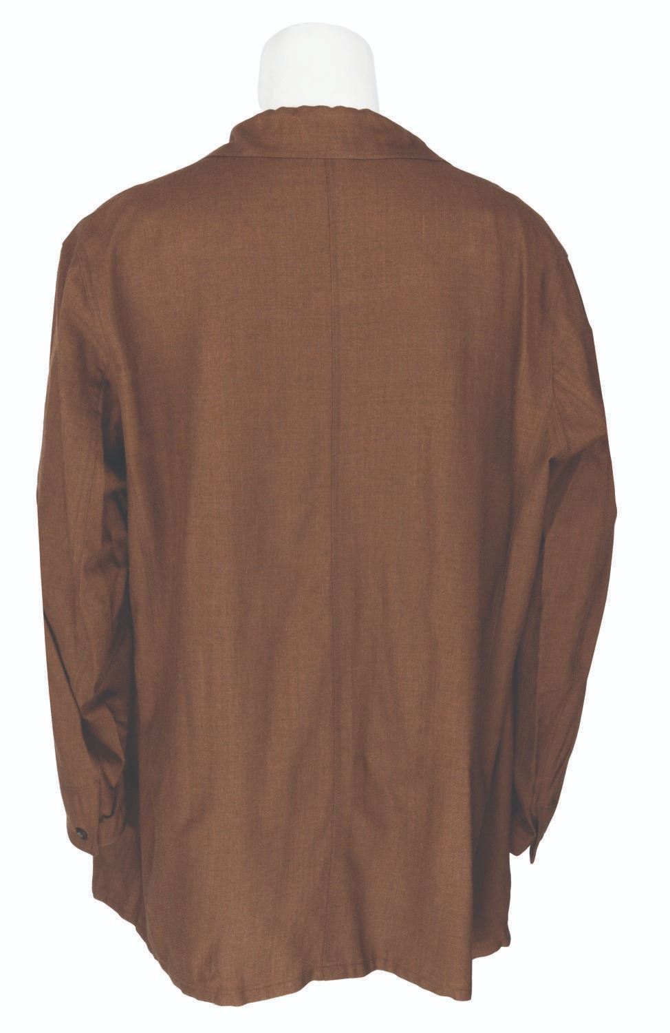 (Miramax, 2002) A brown coat worn by Alfred Molina in the biopic “Frida.” Molina portrayed famed Mexican painter Diego Rivera, whose volatile relationship with Frida Kahlo is a prominent part of the film’s story. No sizing information is included, though the coat appears to be a men’s size XL and is in very good condition with light wear from production use.