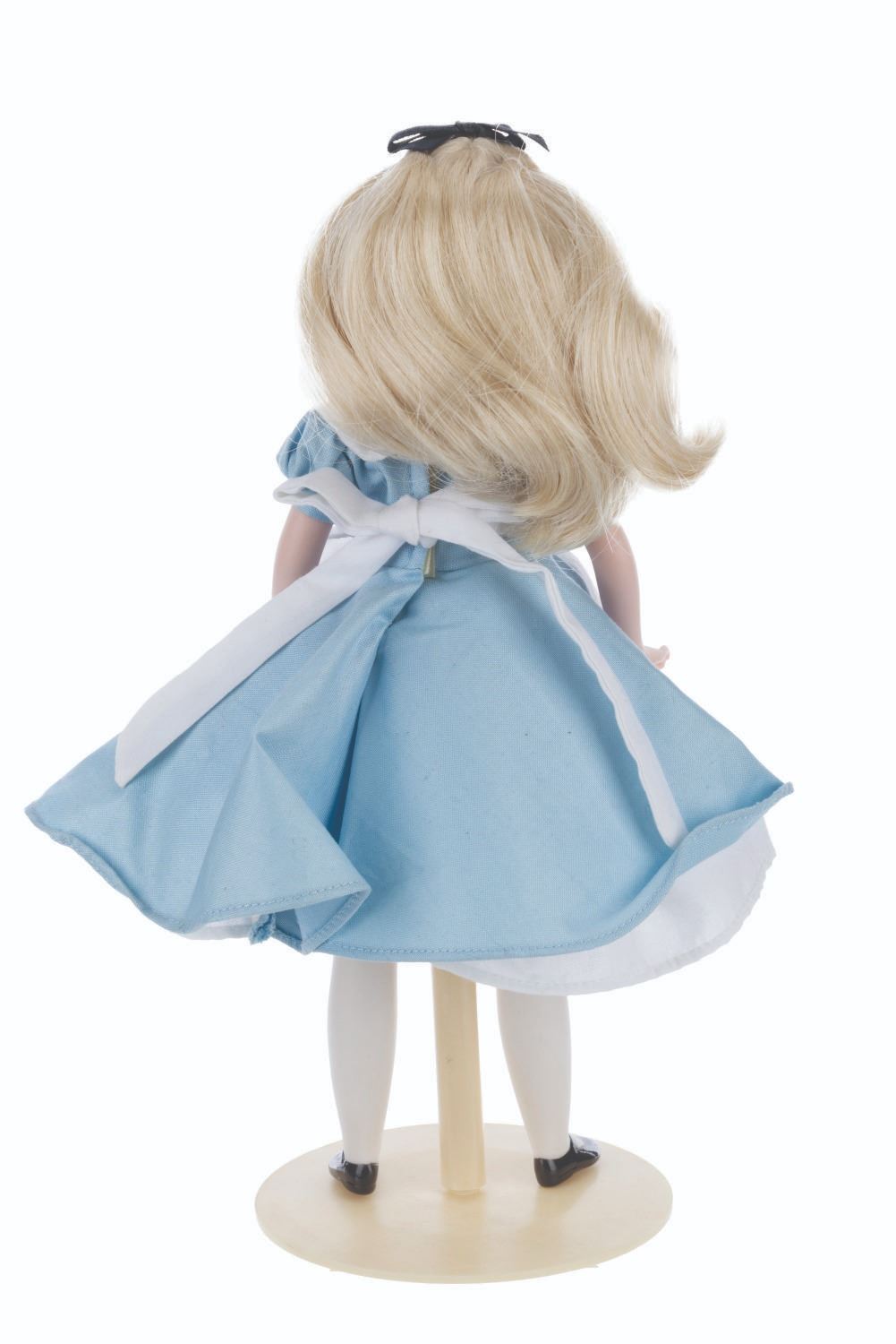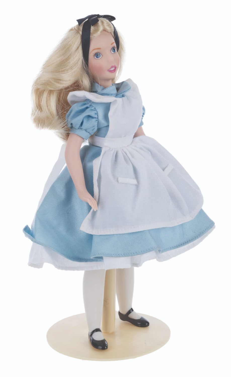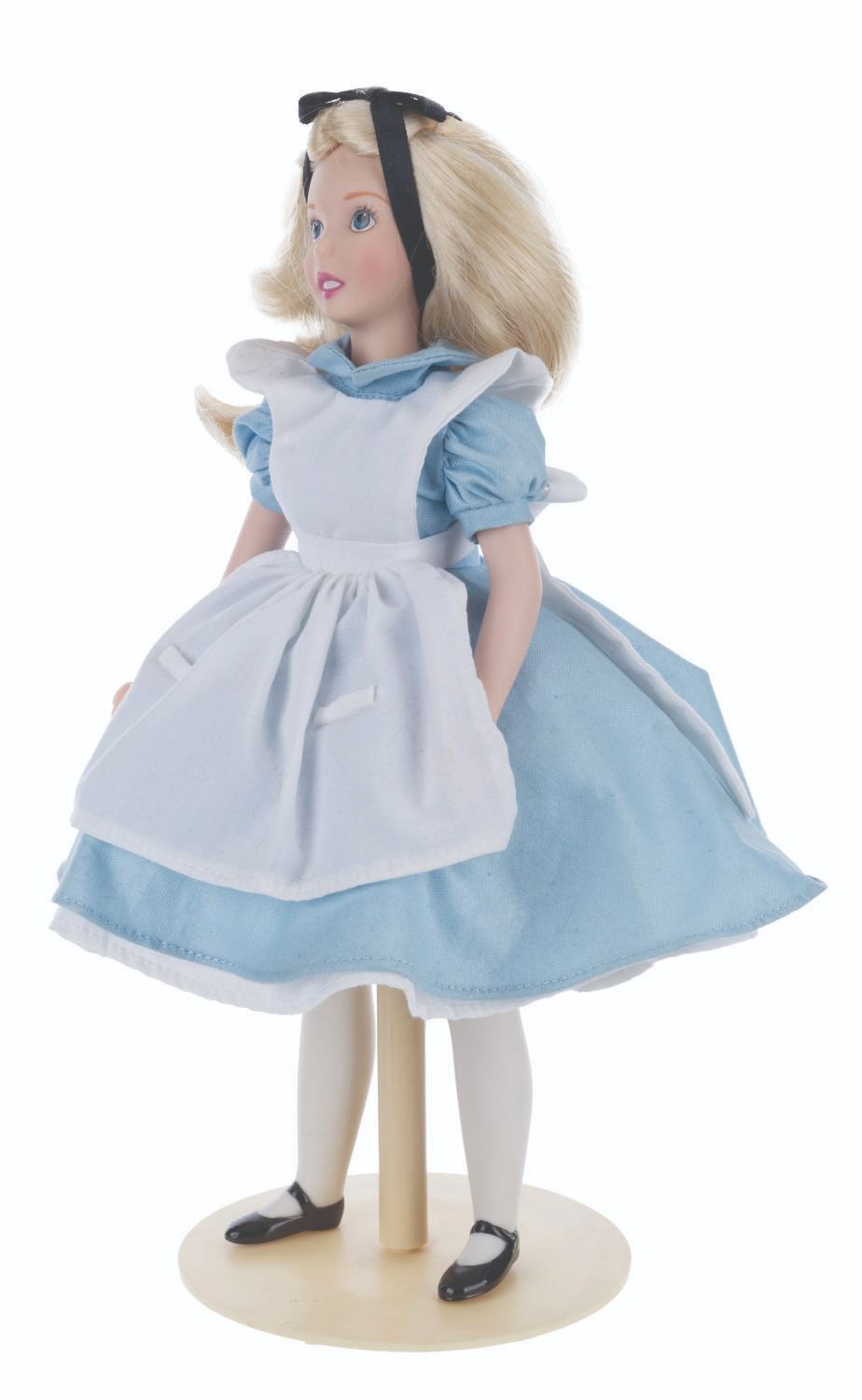 (Franklin Mint, 1991) An Alice in Wonderland doll sculpted from fine bisque porcelain, hand-painted with meticulously tailored fabric clothing and accessories. Produced in 1991 by the Franklin Mint, the 11.5" tall doll is in fine unused condition and comes with its original packaging.