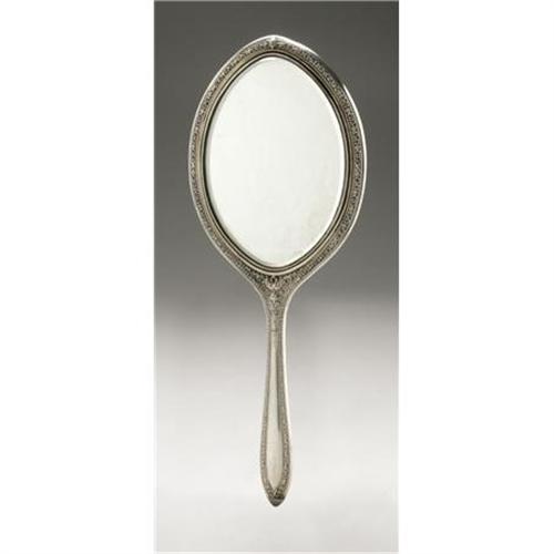 <B>An American Silver Hand Mirror</B></I><BR><B>Alvin Corp., Providence, RI, Early Twentieth Century</B></I><BR><BR>Marked on the side <I>STERLING ALVIN</B></I><BR>12.6in. long x 4.8in. wide