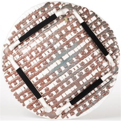 <B>An American Ceramic Woven Plate<BR></B></I>Larry Lubow, California, USA<BR>Late Twentieth Century<BR>Woven ceramic strips in red and white<BR>Unmarked<BR>26 inch diameter<BR><BR><b>Shipping:</b> Requires 3rd Party Shipping (<a target="_blank" href="http://www.heritageauctions.com/common/shipping.php">view shipping information</a>)