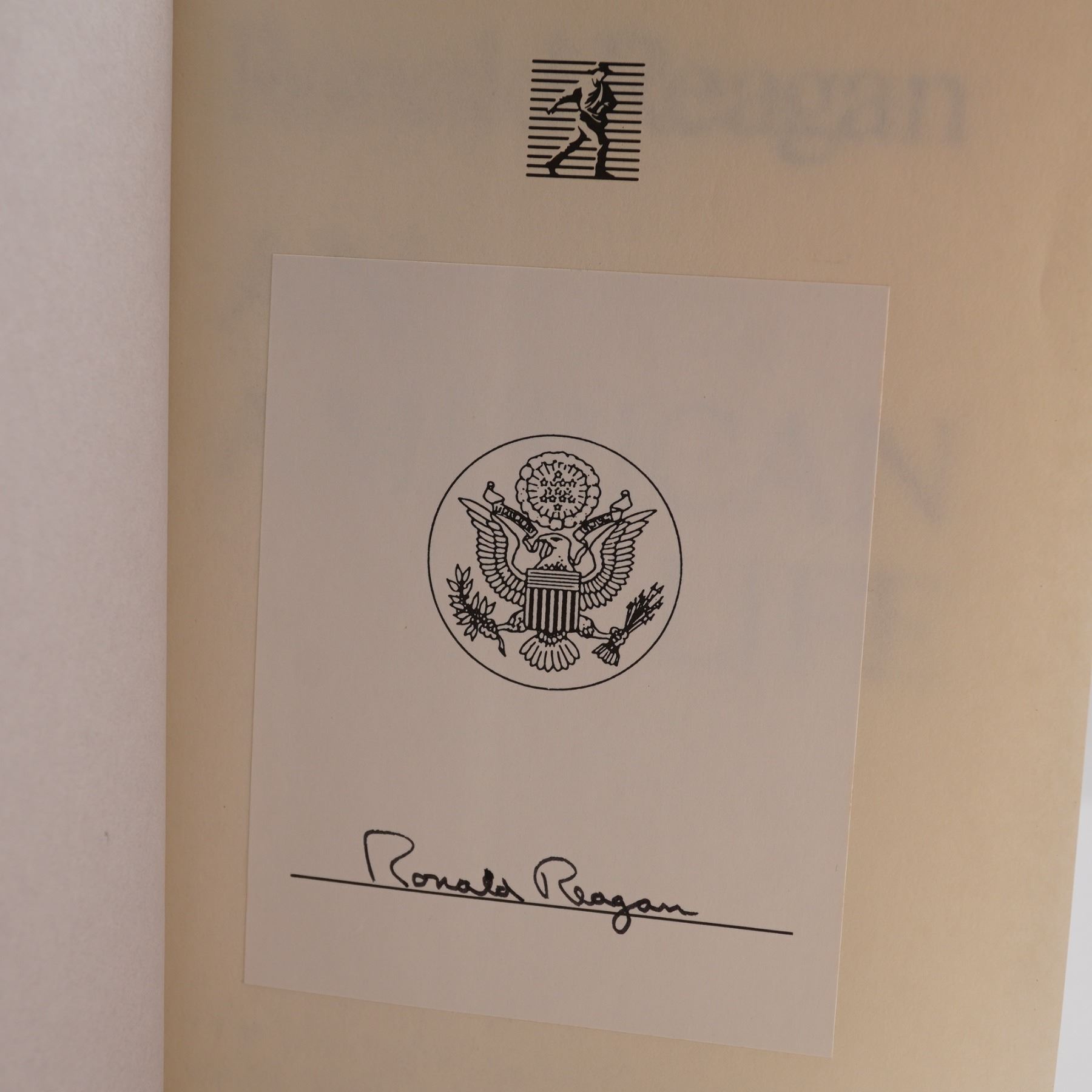 Comes in its original dust jacket with a full body image of Reagan on the front and his smiling portrait on the back. The book includes a signed presidential bookplate. Inside, Reagan recounts his early years, his rise in Hollywood, his time as governor, and his two terms as President, offering personal reflections on politics, history, and the American spirit. Ronald Regan signature. ISBN: 0671691988.
