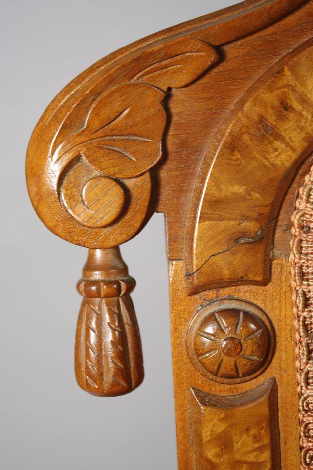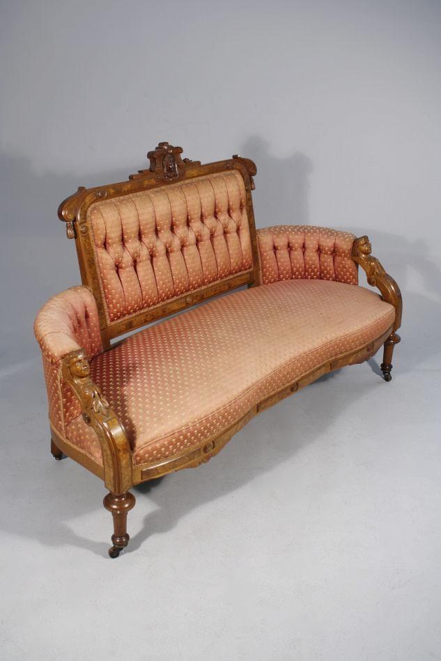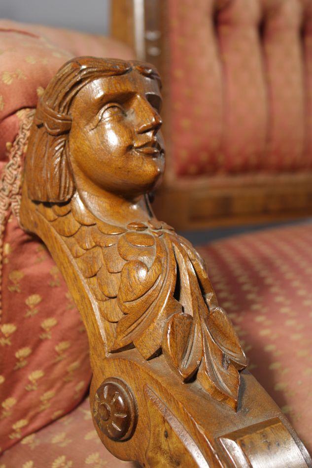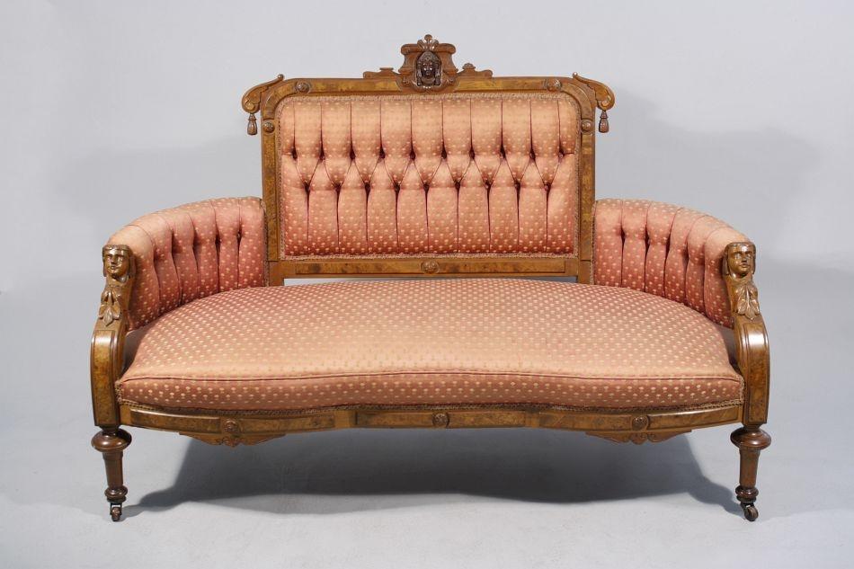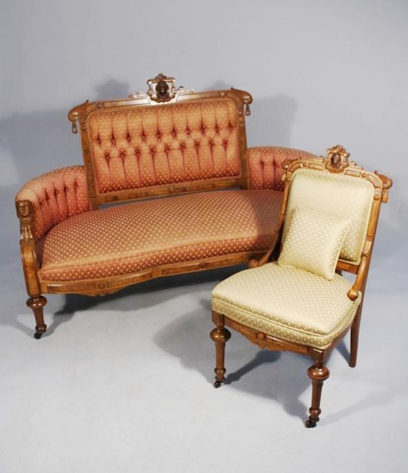 An American Renaissance Revival Carved Walnut and Burled Walnut Sofa and Side Chair, Late 19th Century, Attributed to John Jelliff (...