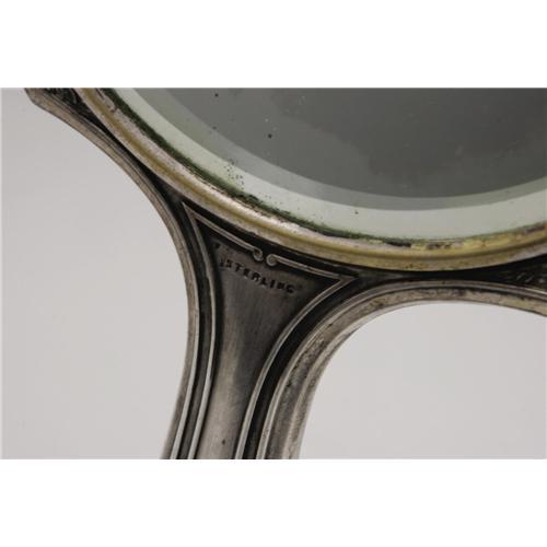 <B>An American Silver Hand Mirror</B></I><BR><B>Maker unknown, Early Twentieth Century</B></I><BR><BR>Marked to the top of the handle <I>STERLING</B></I><BR>9.4in. long x 5.2in. wide1 Items <BR><BR><B>Condition Report:</B> Normal signs of wear as appropriate with age; dents to the top. <BR><BR><B>Important notice:</