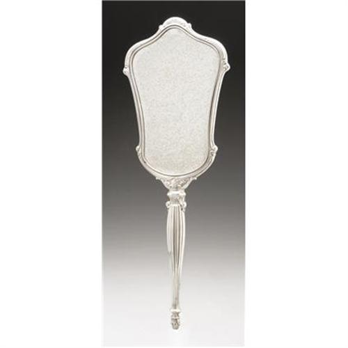 <B>An American Silver Hand Mirror</B></I><BR><B>Webster Company, North Attleboro, MA, Late Nineteenth Century</B></I><BR><BR>Hallmark to the top of the mirror<BR>13.5in. long x 4.8in. wide1 Items <BR><BR><B>Condition Report:</B> Normal signs of wear as appropriate with age; mirror shows some minor antiquing.