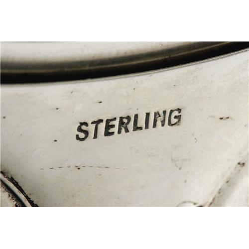<B>An American Silver Hand Mirror</B></I><BR><B>Maker unknown, Early Twentieth Century</B></I><BR><BR>Marked on the front <I>STERLING</B></I><BR>10in. long 5.4in. wide