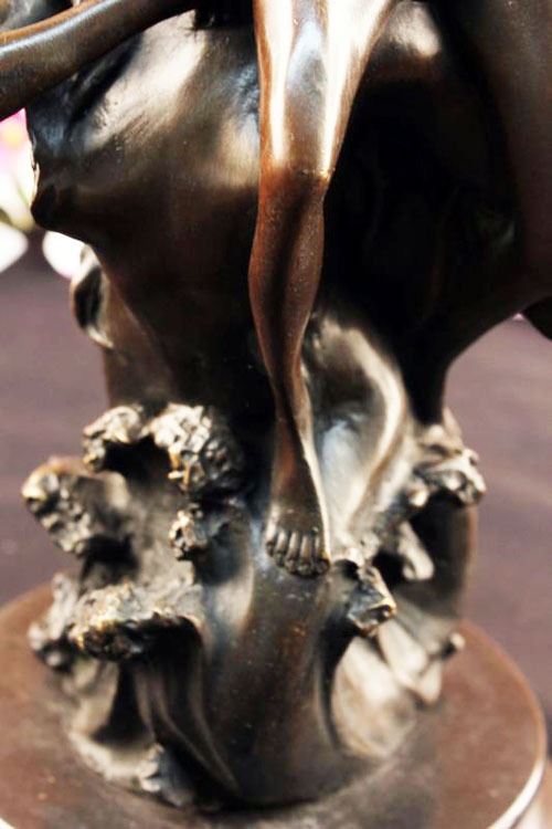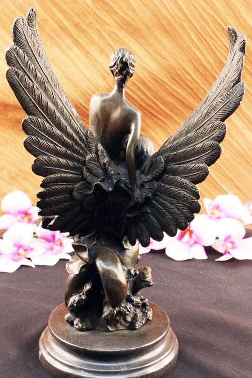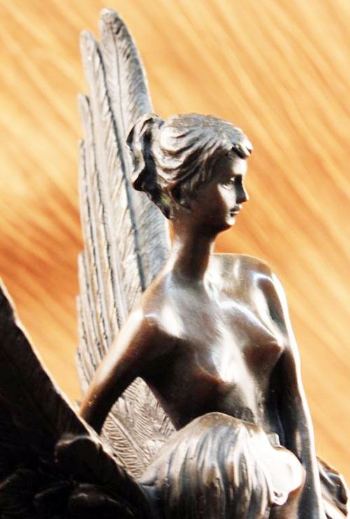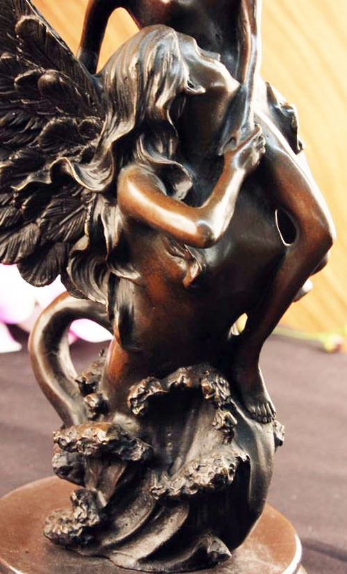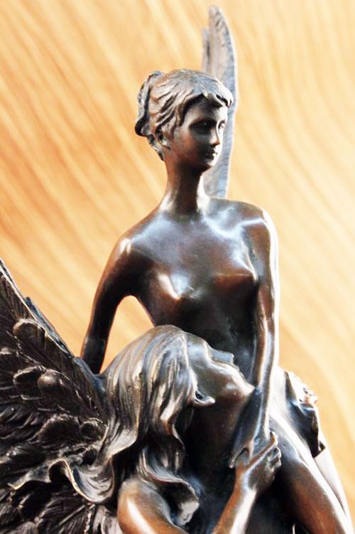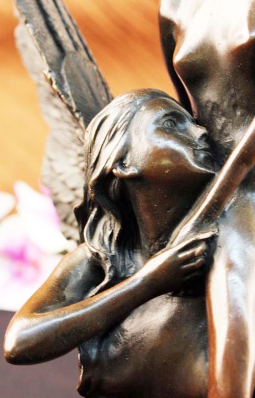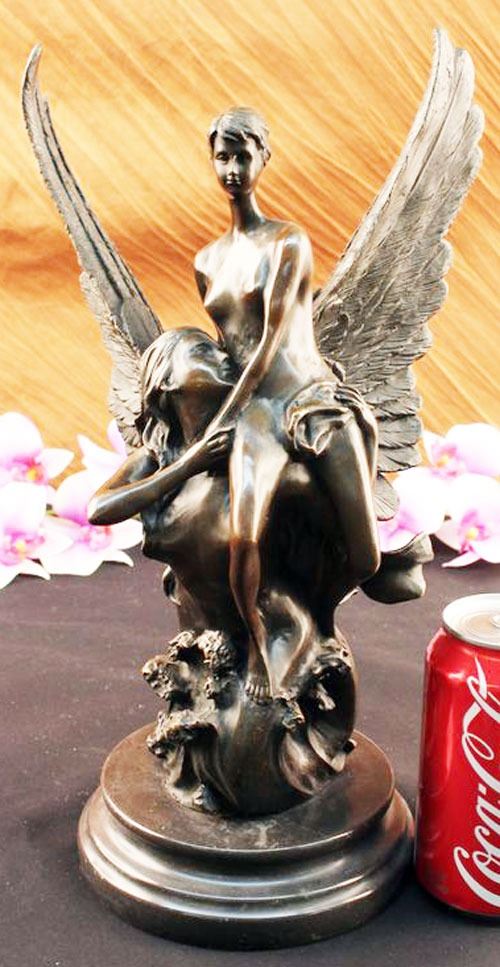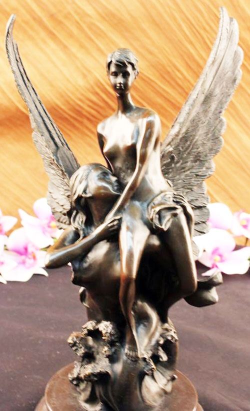 This Sculpture Relates To Hard Troubles Because It Shows That An Angel Is Always By Your Side To Lift Your Spirits. This Lovely Sculpture Of An Angel Rescuing Another Woman. Part Of The Reality Of Life Is Hardship. That Is Not A Negative Statement. It Is Simply A Statement Of Fact. Every Day Brings New Challenges. Living With The Expectation That Life Will Be Difficult Makes Hard Times Easier To Deal With. When A Family Encounters Hard Times They Will Need To Join Together And Face The Challenge As A Team. They Will Need To Be Sensitive To The Needs Of Individual Family Members Each Of Whom Will Face Unique Difficulties. Life Is Not Easy, But Having A Support System Makes Life That Much Easier. 100% Bronze And Fully Detailed. This Sculpture Was Castusing The "Lost Wax Method" And Is Mounted On A Circular Black Marble Base. Bronze Dimensions With Marble Base:Height 14" X Width 8". This is very interesting bronze sculpture based on the original piece.