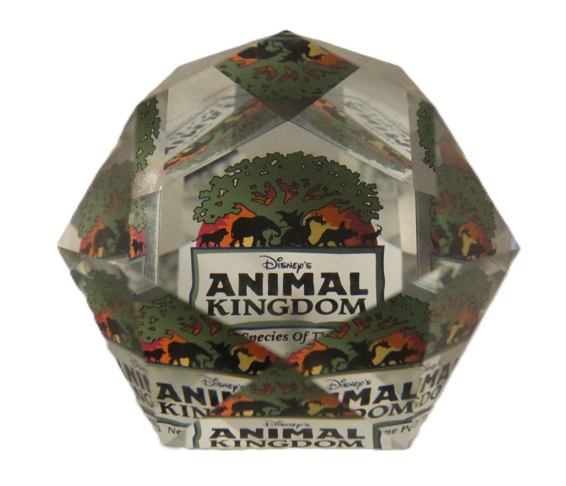 (Walt Disney World) A large 2.5" faceted crystal with the Animal Kingdom logo in its mirrored center. The limited edition crystal was produced by longtime Disneyland participant sponsor Arribas Bros. and is in like new condition in its original box.