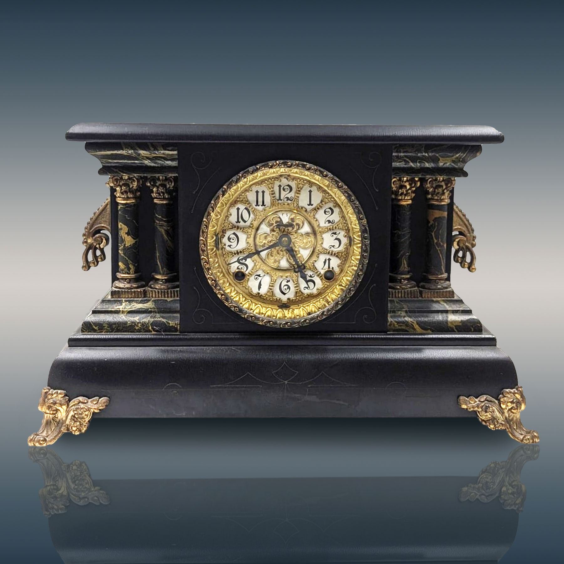 An Antique E. Ingrahm Co. Ornate Mantle Clock With Gilt Decal, Untested