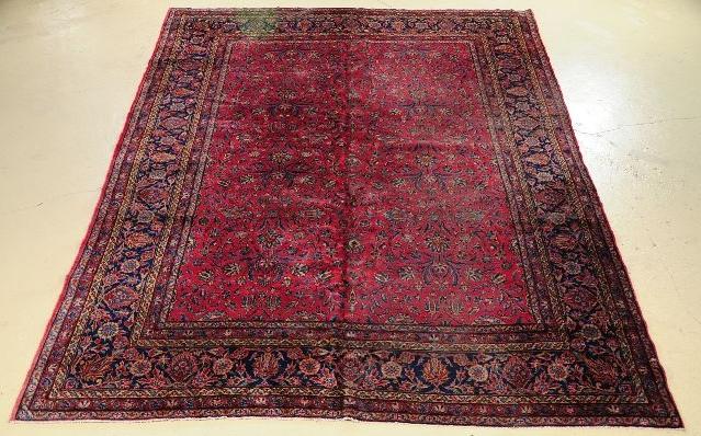 An Antique Persian Kashan Wool Rug. 9 ft x 12 ft
