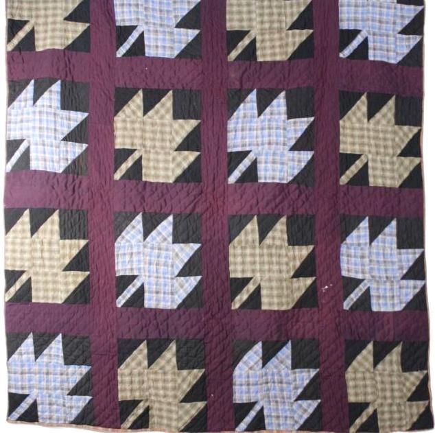 An Appliqué Tea Leaves Pattern Cotton Quilt.