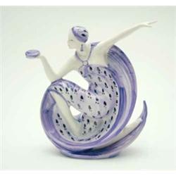 An Art Deco Crown Devon stylised figure of a flapper, in style of Goldscheider, kneeling with arm outstretched, her lilac dress in a circular swirl, 10.75ins £150-200