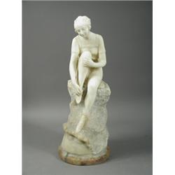 An Art Deco alabaster figure of a lady seated on a rock, indistinctly signed to back, 53cm Est. 5...