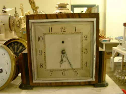 An Art Deco walnut mantel timepiece by Smiths, H 17cms W 22cms £40-60
