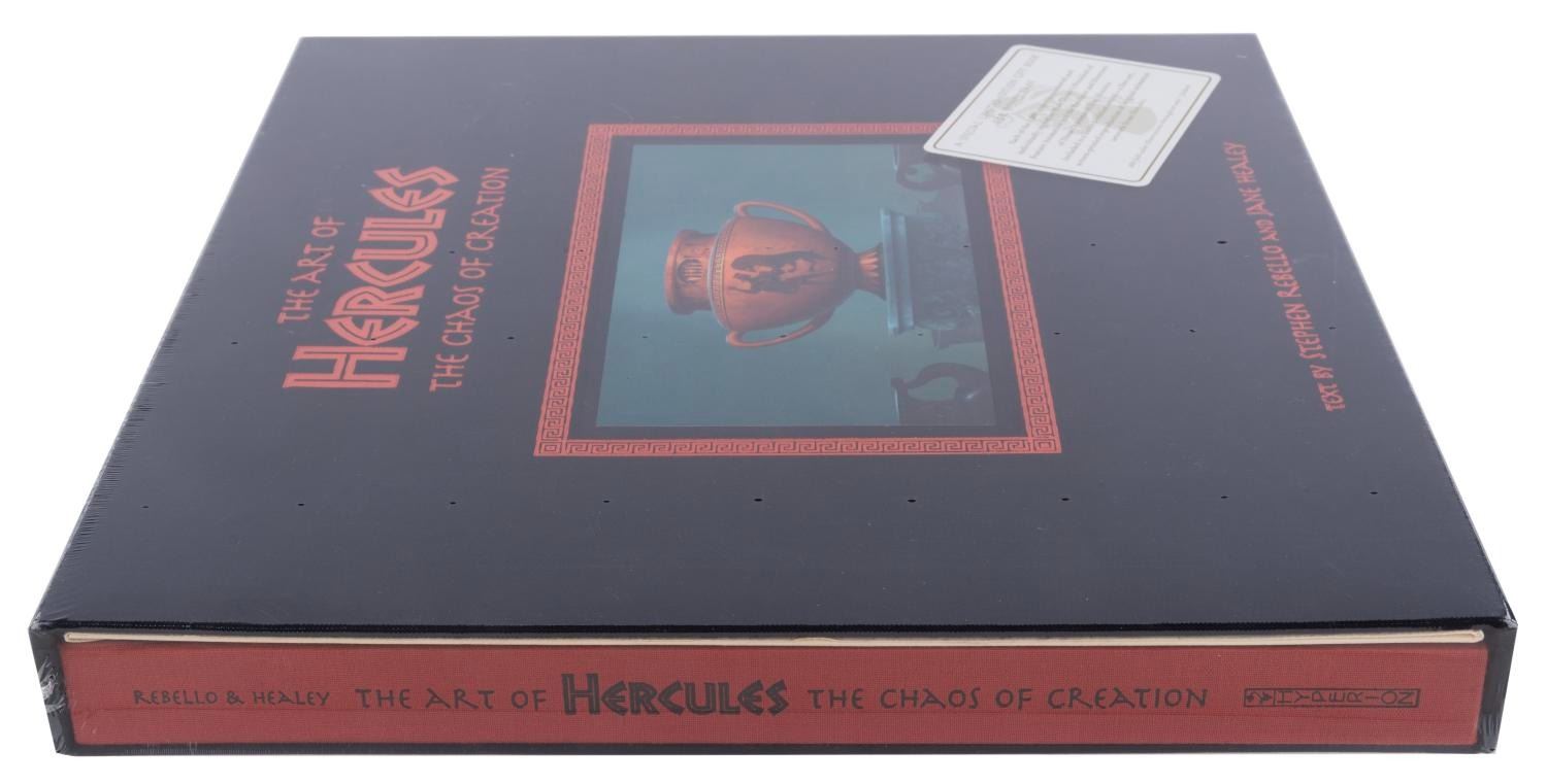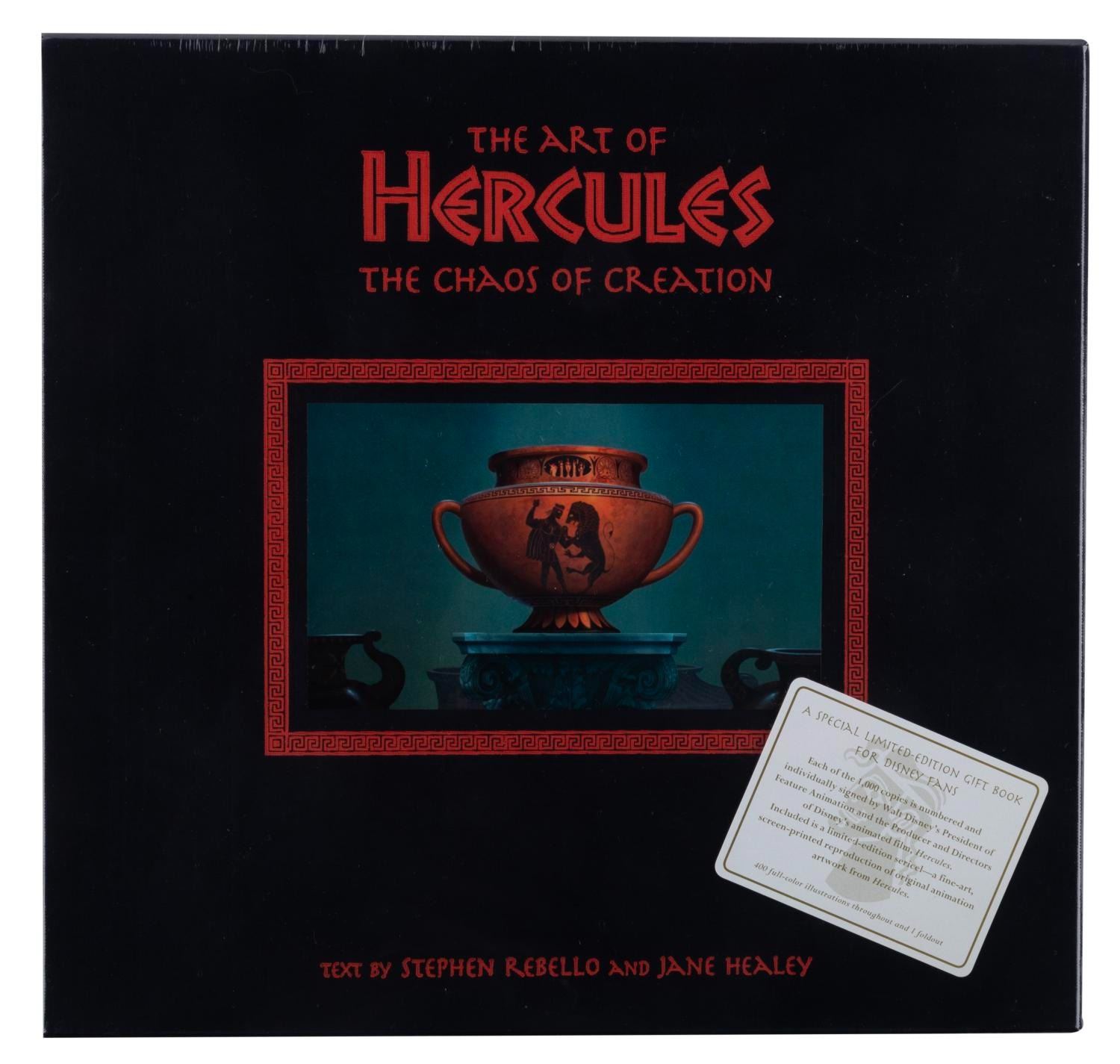 (Hyperion, 1997) An unopened The Art of “Hercules”: The Chaos of Creation book by Stephen Rebello and Jane Healey. The limited-edition of 1000 book is signed by members of the production crew and includes a sericel. Measuring 12.25” x 1.25” 11.75”, the shrinkwrapped book is in presumed fine condition with light wear to the plastic.