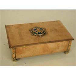 An Arts and Crafts copper and enamel cigarette box. 17.5cm Est.120/150