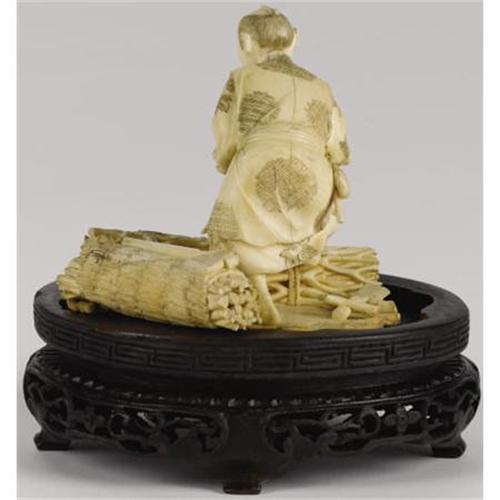 <B>An Asian Ivory Figure<BR></B></I>Unknown maker<BR>Twentieth Century<BR>The ivory figure of a man tying bundles of wood, on a dark wood pedestal<BR>Unmarked<BR>2.7 inches high x 3 inches wide<BR><BR><b>Shipping:</b> Requires 3rd Party Shipping (<a target="_blank" href="http://www.heritageauctions.com/common/shipping.php">view shipping information</a>)