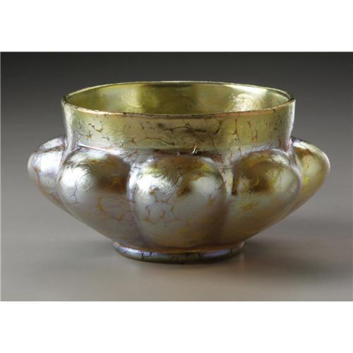 <B>An Austrian Glass Bowl</B></I><BR><B>Loetz, c.1900</B></I><BR><BR>The iridescent gilt bowl with fluted sides, unsigned<BR>3in. high x 5.7in. diameter<BR>Provenance: From the collection of Rita and Richard Chouinard. <BR><BR><B>Important notice: