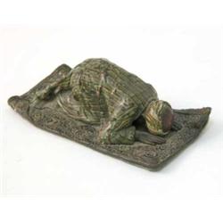An Austrian cold painted bronze figure of a praying Arab, modelled kneeling on a carpet, 5 ins £200-250