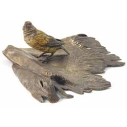 An Austrian early 20th century cold painted bronze bird, perched on a folded table cover, impressed trademark stamps, 9 ins wide £250-300
