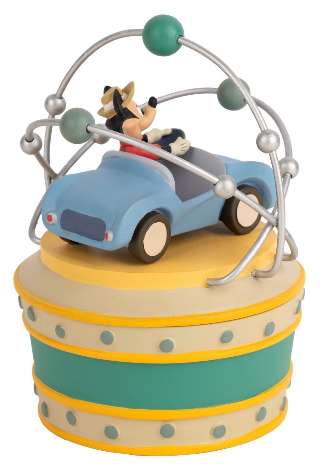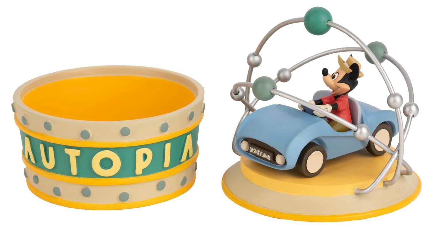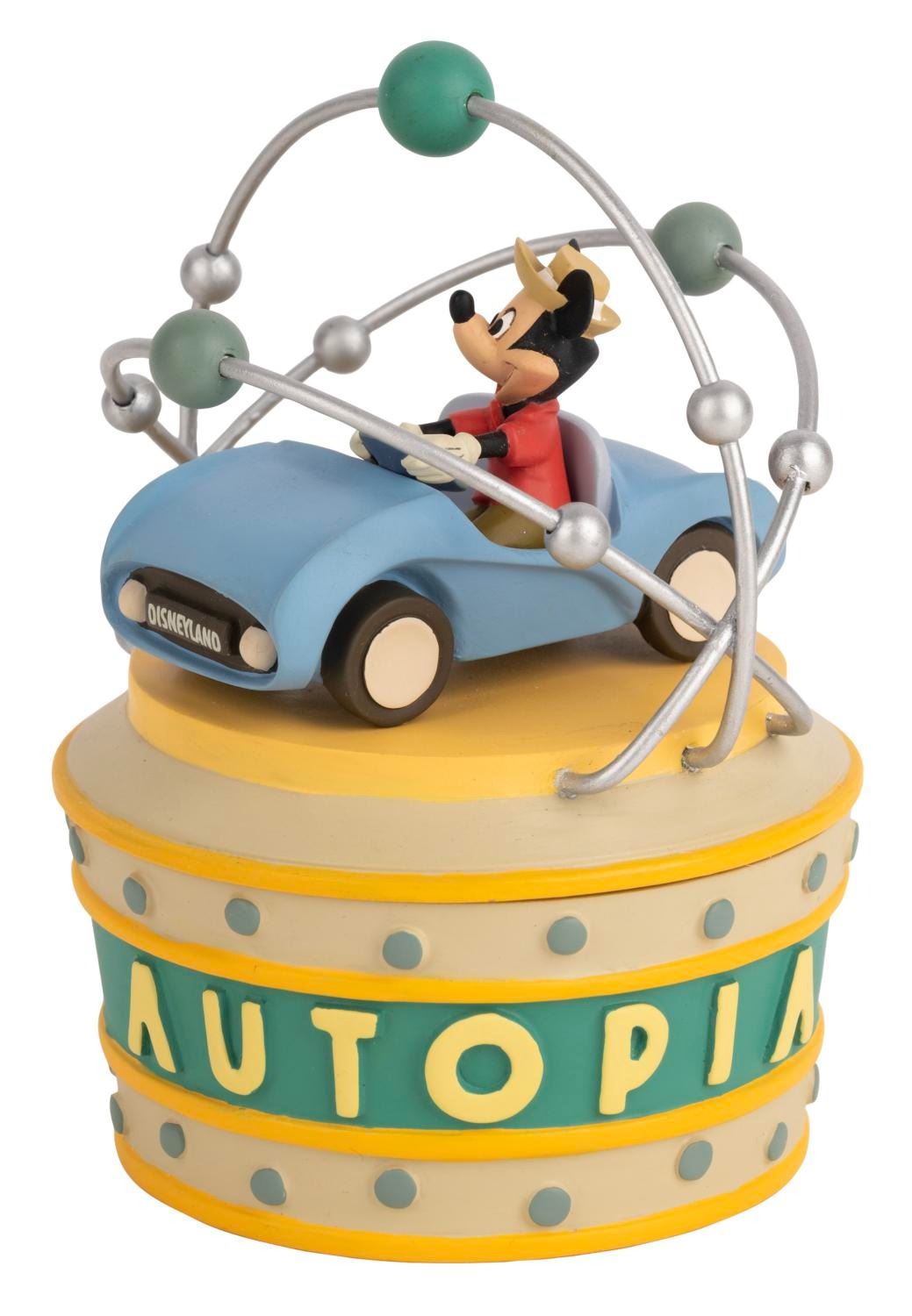 (Disneyland, 2005) An Autopia collectible trinket box designed and sculpted by Kevin Kidney for the 50th anniversary of the Park. Numbered 452 in an edition of 1955, measuring 3.5" x 3.5" and 4.5" tall, the trinket box is in very good condition with light wear.