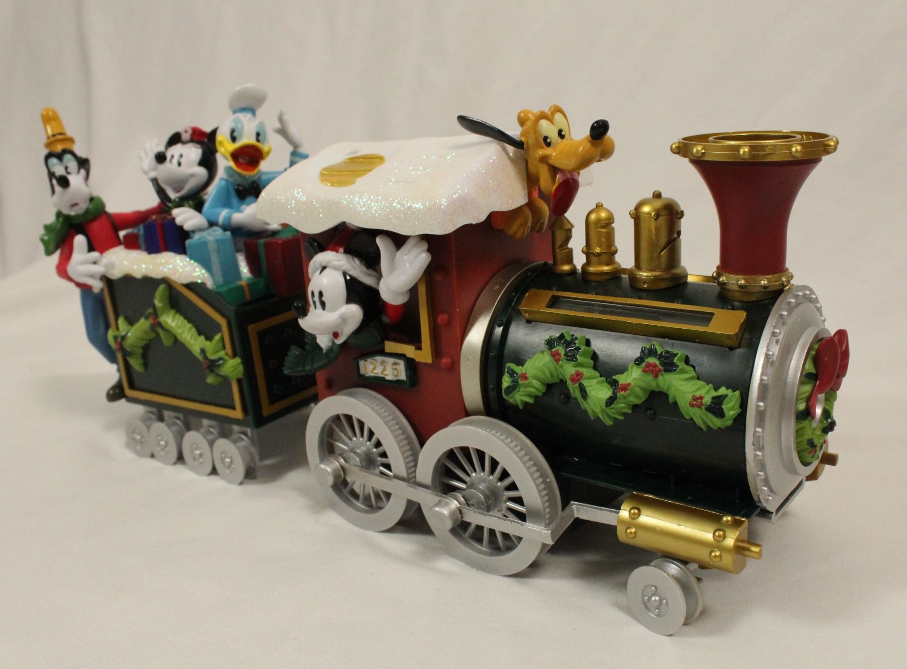 (2015) This adorable train set includes a steam engine, coal car and 13 pieaces of track. It features Mickey and Pluto in the engine, and Goofy, Minnie, and Donald on the coal car. This set is new in box.