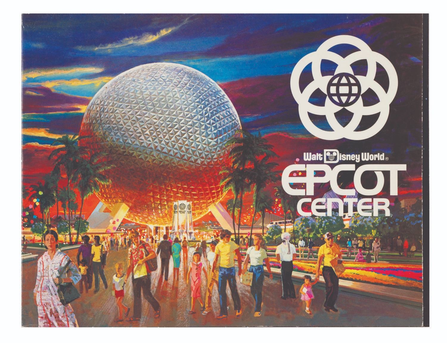 (EPCOT, 1982) A rare opening year guidebook for EPCOT Center. The 47-page book primarily shows concept artwork with descriptions of the different areas of the Park, while later guides featured photographs. Measuring 8.5" x 11" the book is in good condition with some light surface and edge wear, as well as some creasing on the right side of the cover, and splitting along the spine.