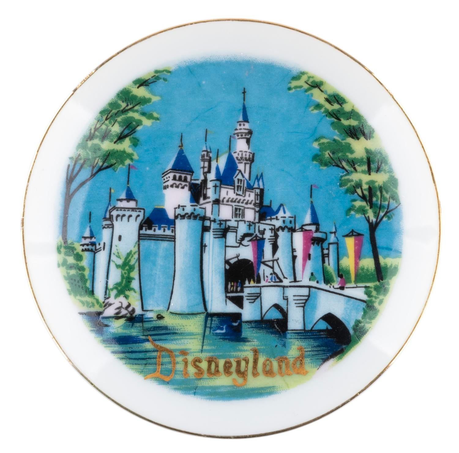 (Disneyland, 1950s-60s) A ceramic souvenir mini-plate featuring Sleeping Beauty Castle. Measuring 4" in diameter, the plate is in very good condition with very light wear.