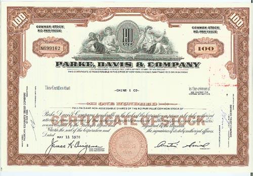 1936, Michigan. Stock certificate for 100 shares. Brown/Black. Vignette of seated female allegorical figures flanking company logo. Punch cancelled. Very fine.