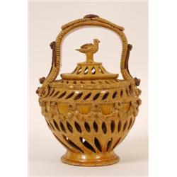 An Earthenware Jar and Cover, with pierced decoration and a bird finial (slight damage) See illustr