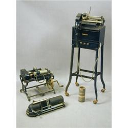 An Ediphone dictaphone on a stand, an Edison shaving machine, one other machine with cylinders and other pieces Est. 100/200