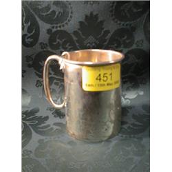 An Edward VII silver straight sided mug, with loop handle, engraved with amonogram and date 1909, Birmingham 1908, 3" high, 3ozs.