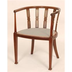 An Edwardian Mahogany Tub Chair, with pierced back splats and chequer inlay, on square tapering legs £60 - 80