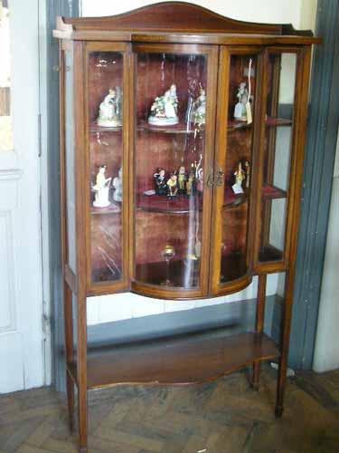 An Edwardian bow-fronted display cabinet, inlaid and glazed, H 164cms W 90cms £500-800