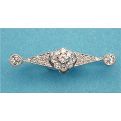 An Edwardian gold, diamond set bar brooch, the central flowerhead cluster flanked by tapered pave set shoulders and single stone terminals (see illustration) £300-500