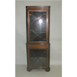An Edwardian inlaid double corner cabinet, 27" wide x 74" high....