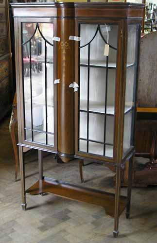 An Edwardian inlaid mahogany display cabinet enclosed by glazed doors, H 167.5cms W 90.5cms £250-350