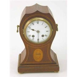 An Edwardian inlaid mahogany mantel clock, with balloon case and enamelled dial, 11.5ins £120-150